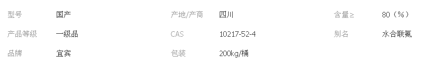 1、無色發煙液體,呈弱堿性,微有特臭,可燃。能從空氣中吸收二氧化碳。對玻璃、橡膠等材料有腐蝕性。