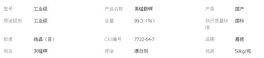 1、高錳酸鉀為深紫色細長斜方柱狀結晶,有金屬光澤。溶于水、堿液,微溶于甲醇、丙酮、硫酸